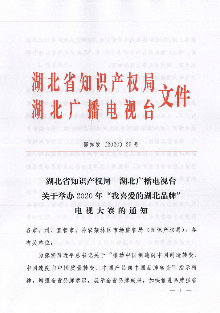金秋十月,由湖北省知識(shí)產(chǎn)權(quán)局、湖北廣播電視臺(tái)主辦,湖北省知識(shí)產(chǎn)權(quán)發(fā)展中心、湖北廣播電視臺(tái)電視綜合事業(yè)部承辦的“2020我喜愛的湖北品牌電視大賽”正式啟動(dòng)。